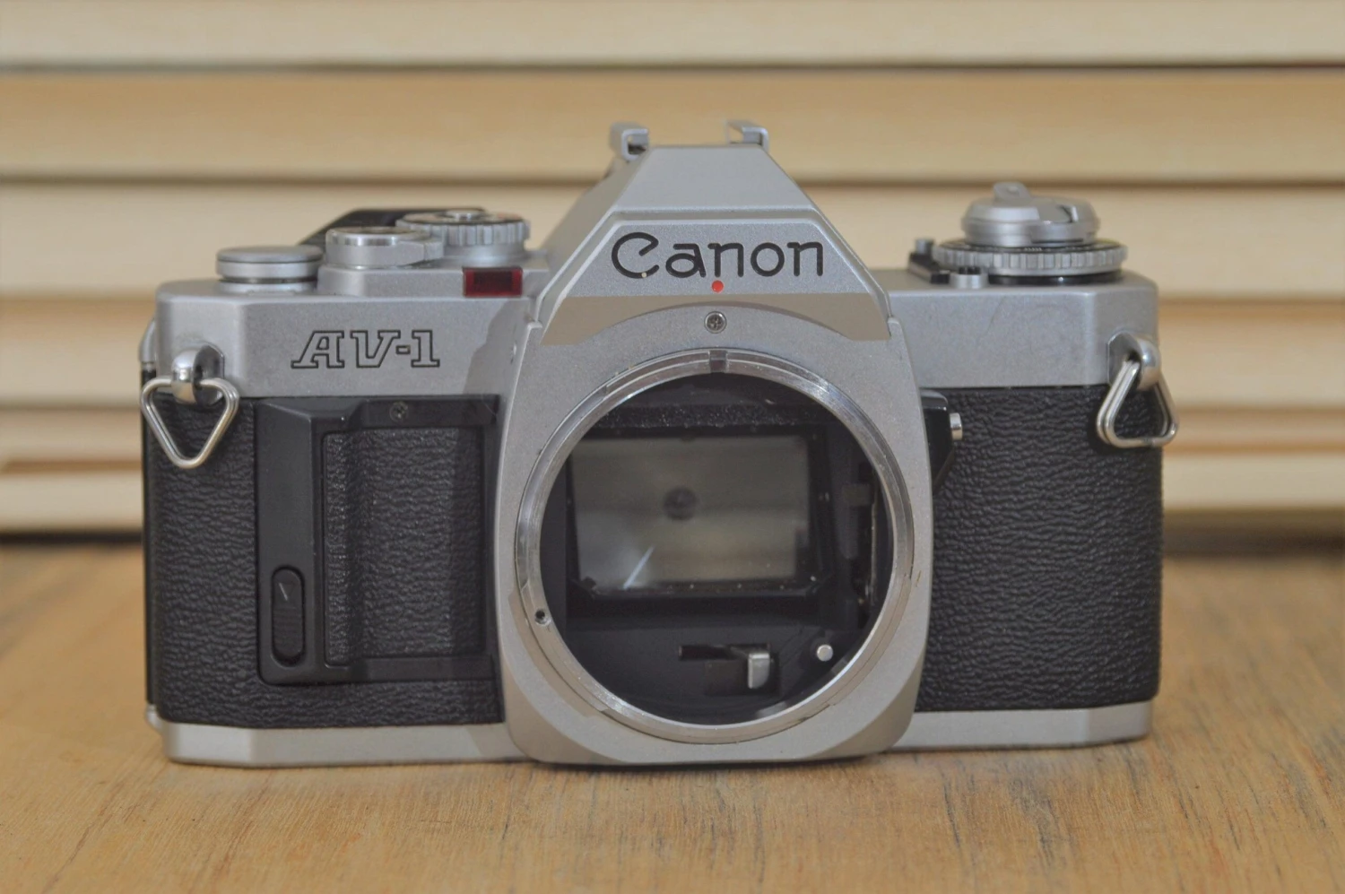 The Canon AV-1 is a 35 mm single-lens reflex camera with an FD lens mount, introduced by Canon Inc. in 1979. The AV-1 is very similar to the 1976 AE1 but provides aperture priority auto exposure rather than the AE1’s shutter speed priority. The camera is not capable of fully manual exposure.