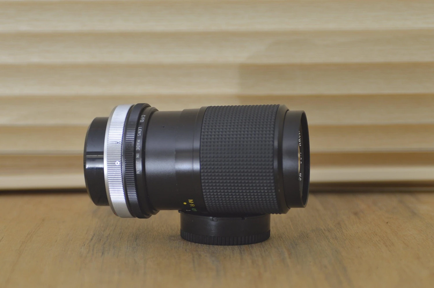 Lovely condition, with beautiful sharp Optics, clean and fungus free. A lovely addition to your Vintage Canon kit. A great lens for macro zoom photography. comes with very handy cushioning tube, great for travelling the lens!