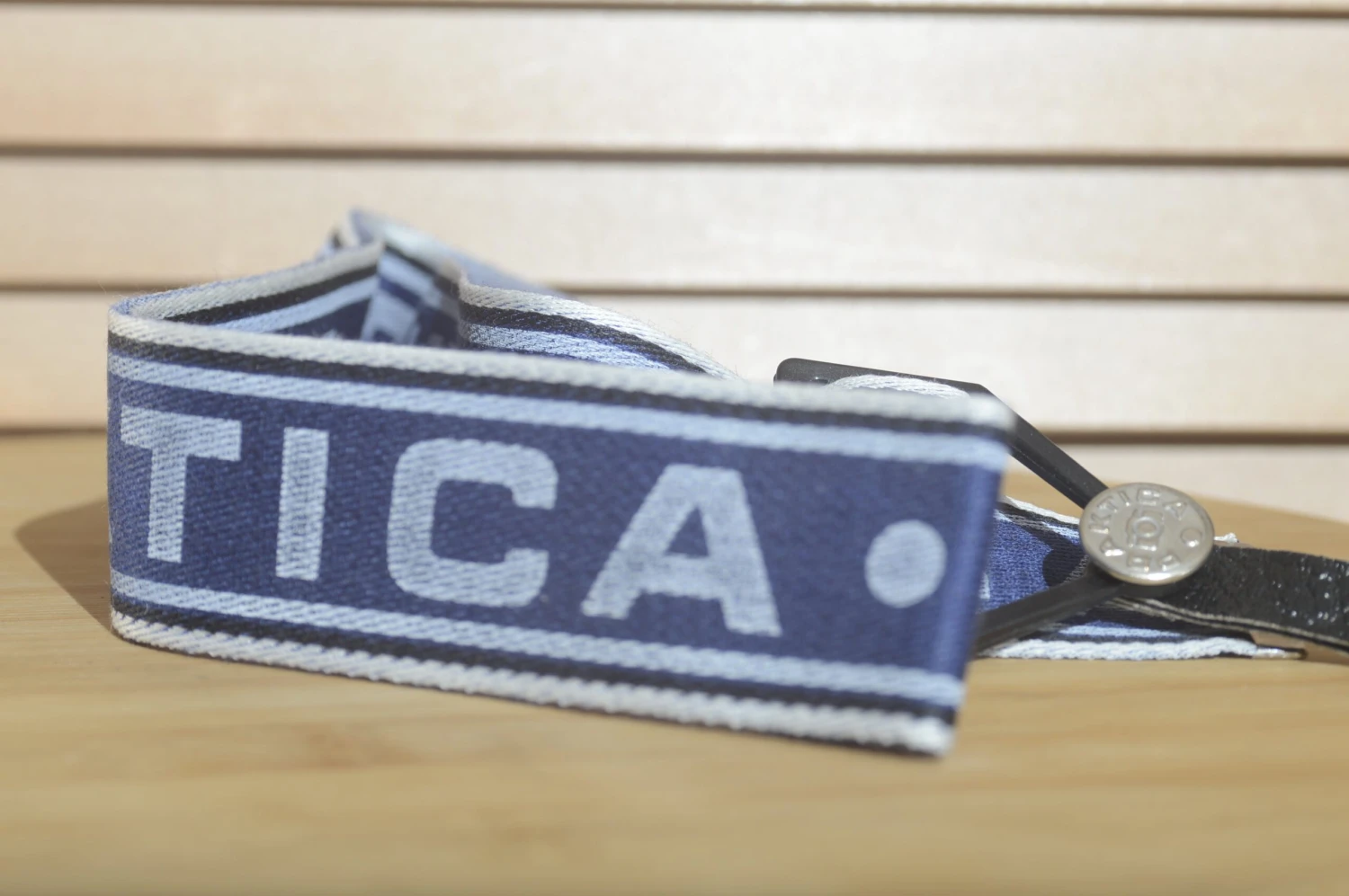 This lovely dedicated blue Praktica strap is in beautiful condition. it’s a medium sized strap that fits comfortably over the shoulder or around the neck. Attaches to the camera via the material straps making it perfect for protecting your vintage camera from ‘strap scratches’. Its in beautiful condition
