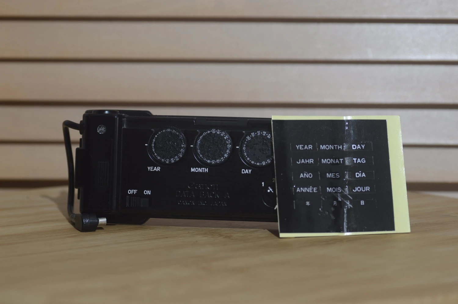 Another accessory developed especially for Canon’s A series cameras is the Data Back A. Great for amateur and professional alike, but it is different from other LCD (Liquid Crystal Display) used by competition like the Nikon MF-12. Instead, it has dials for letters, Roman numerals and dates. Advantage of the dial system is being, it can be used either for dating, or classifying photographs. Attachable right onto the back of the camera, it uses the camera’s electronic circuitry to imprint this information on the film in perfect synchronization with exposure.