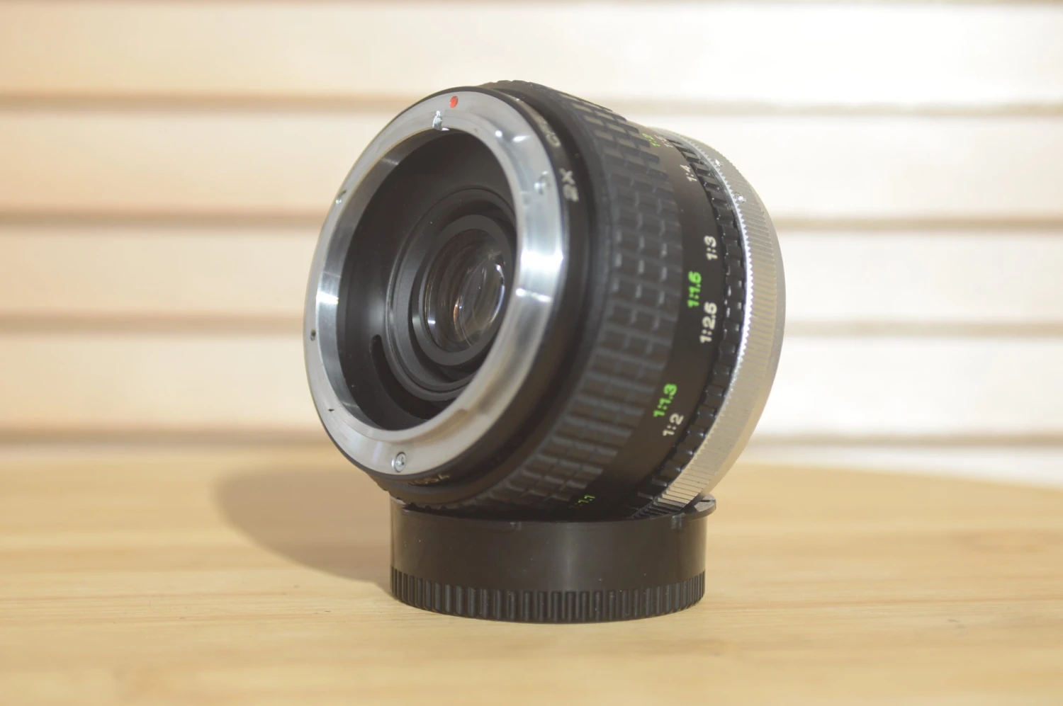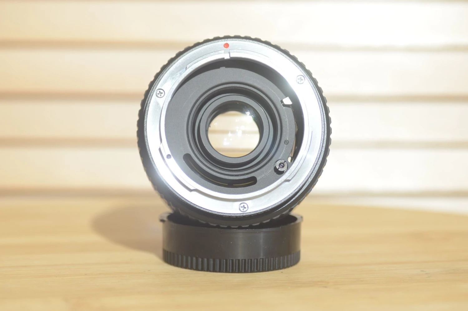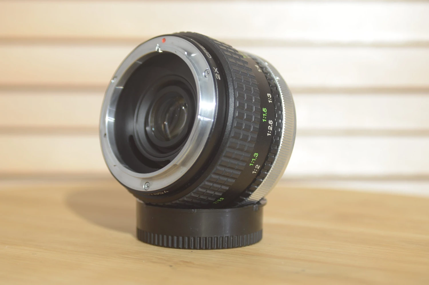 These are really useful for converting an existing lens by doubling its focal length. You can turn your standard 50mm to a 100mm portrait lens quickly without having to carry another lens. Perfect for Macro work and a great pair with your Canon FD Set up.