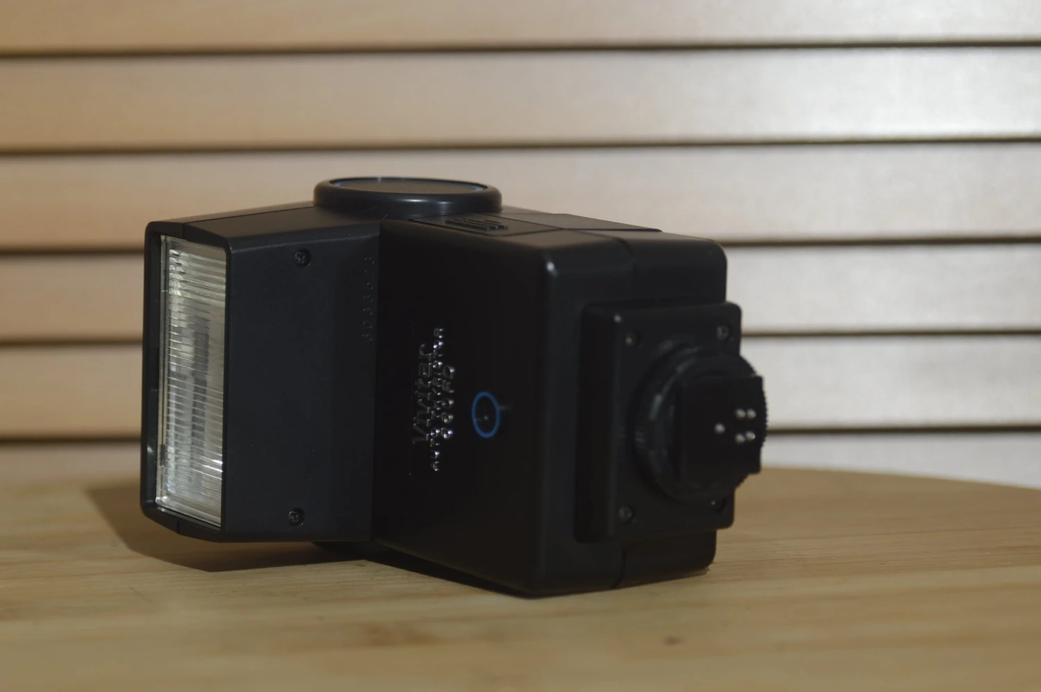 Fantastic and powerful flash in great condition. Great to use in dim light or as a fill in flash especially for portraiture. With added tilt it makes for a great deal of lighting control. These charge quick and the adjustable bounce head make the perfect lighting easily achievable. Although powerful these are still relatively compact so this will easily fit in your kit bag. As with all vintage stock there are some cosmetic marks but we try to show these in the images.