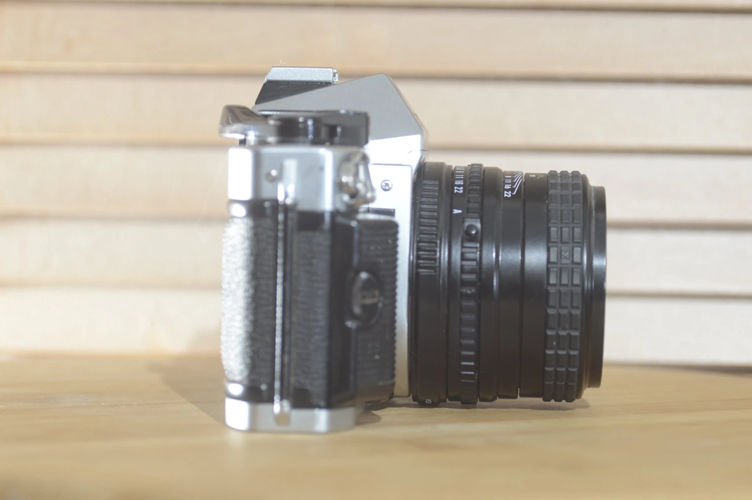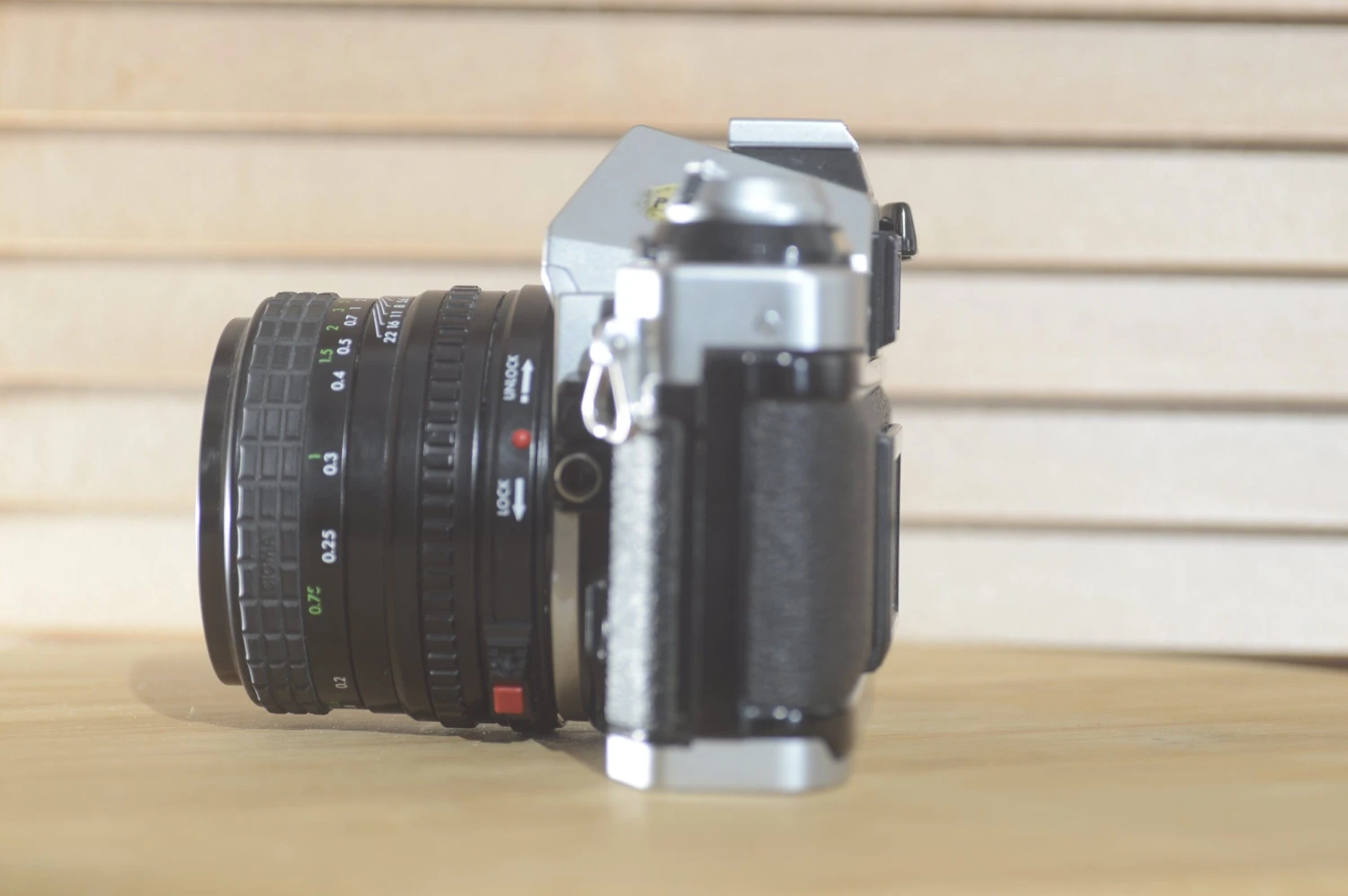 In Impeccable condition with auto and manual functions and a clear view finder. All the class and style of the AE1 but with the bonus of P settings. Fantastic condition prime lens, why not add a UV Filter to help protect the lens and stop any solar haze.