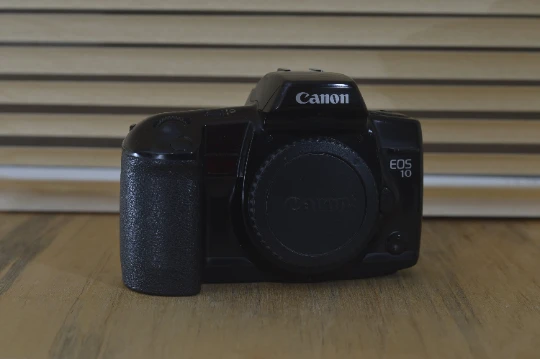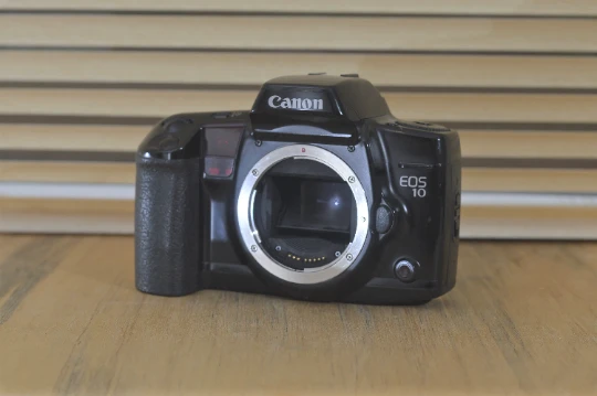 The Canon EOS 10 is an autofocus 35mm SLR introduced in 1990.[1]. The model name was EOS 10S in the Americas, and EOS 10QD in Japan. There was a commemorative metallic-silver version introduced in 1991 to mark Canon’s 60 millionth 35mm camera sold.[2]