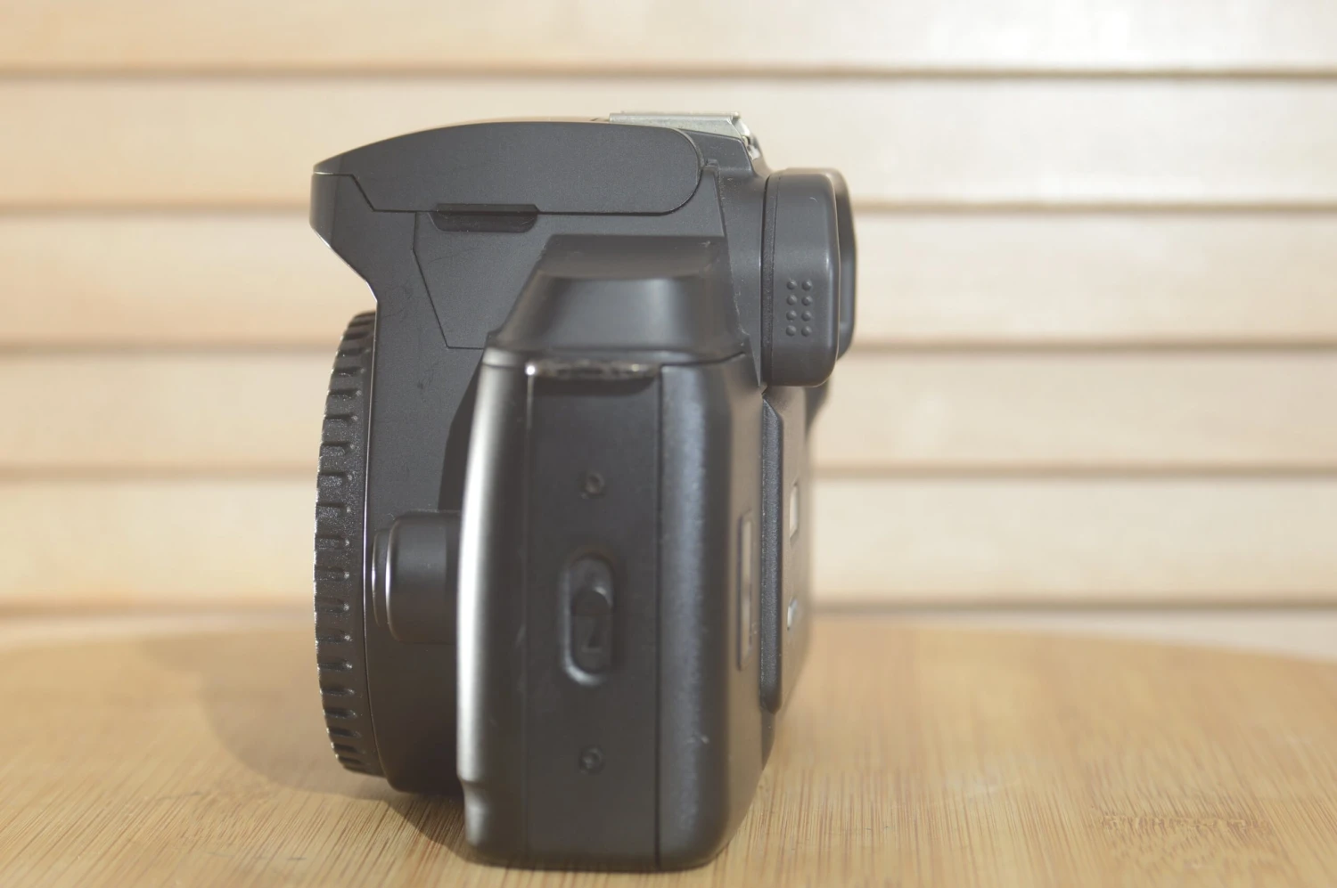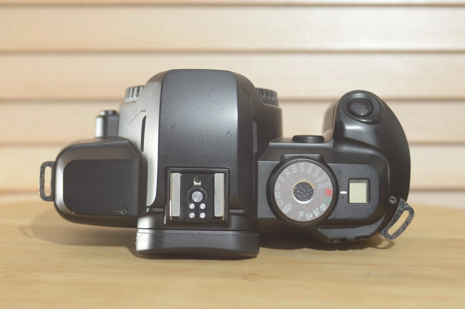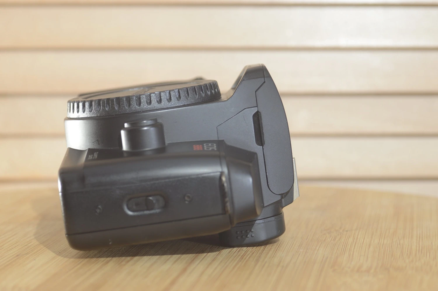 In Near Mint Condition. Fantastic semi professional Eos camera from the early 90s with built in flash and with so many other functions, we are in love with this camera.