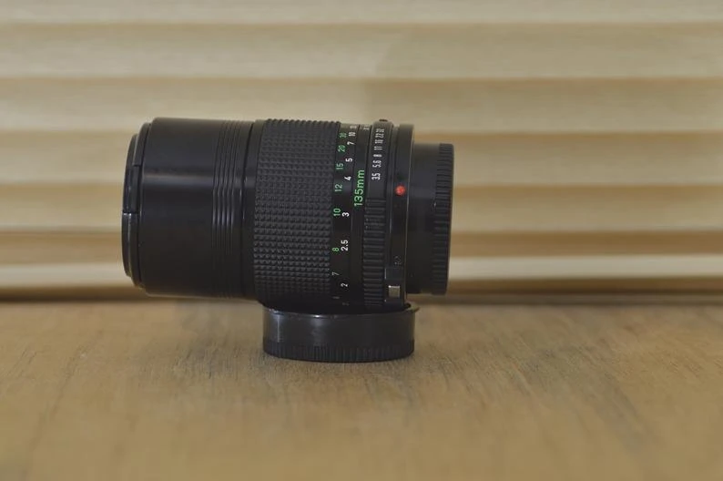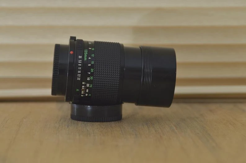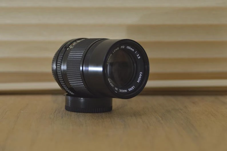 Canon FD 135mm f 3.5 vintage lens in fantastic condition with box! A wonderful lens for portrait photography that will produce amazing images. Aperture and focusing are perfect and the optics are clean and checked for fungus or haze. These are perfect for your A series vintage Canon camera or for digital conversion with an adaptor. Why not add a UV/Skylight filter to help protect your lens and to improve shots in bright conditions?
