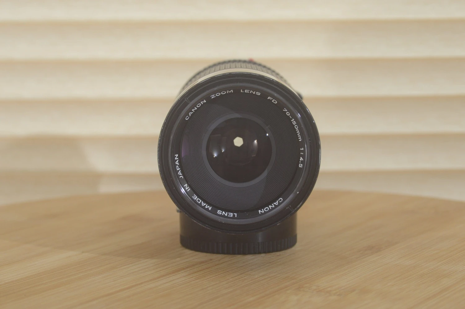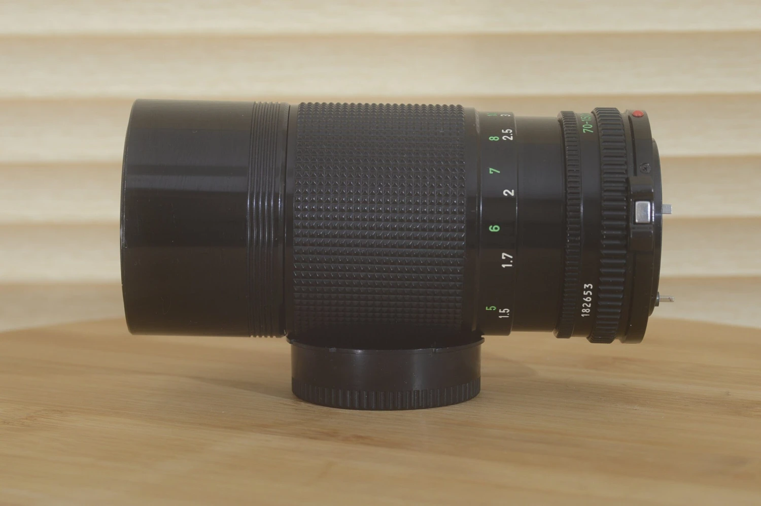 A perfect addition to your Vintage Canon kit. A great lens for vintage photography. This is a perfect lens for portraits and has the crisp warmth you would expect from a Canon FD lens comes with the added advantage of having a built in hood. Could be easily converted to a full frame digital lens.