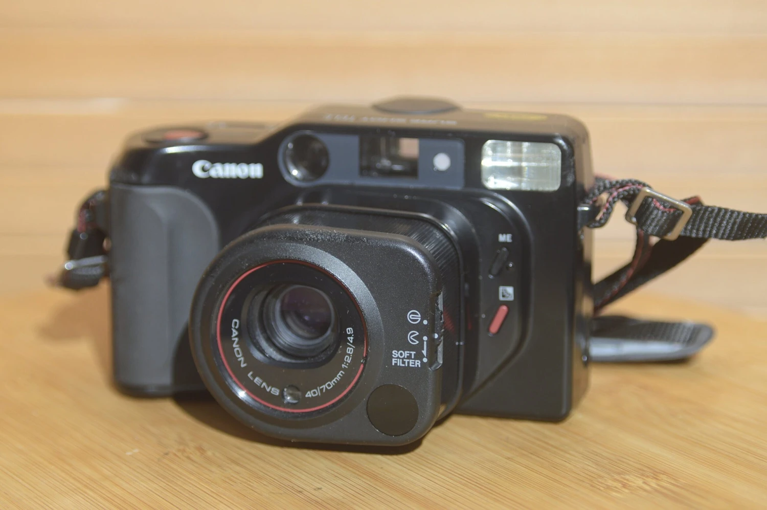 This is a fully automatic 35mm compact camera with two focal lengths: 40mm f/2.8 (4 elements in 3 groups) and 70mm f/4.9 (7 elements in 6 groups).