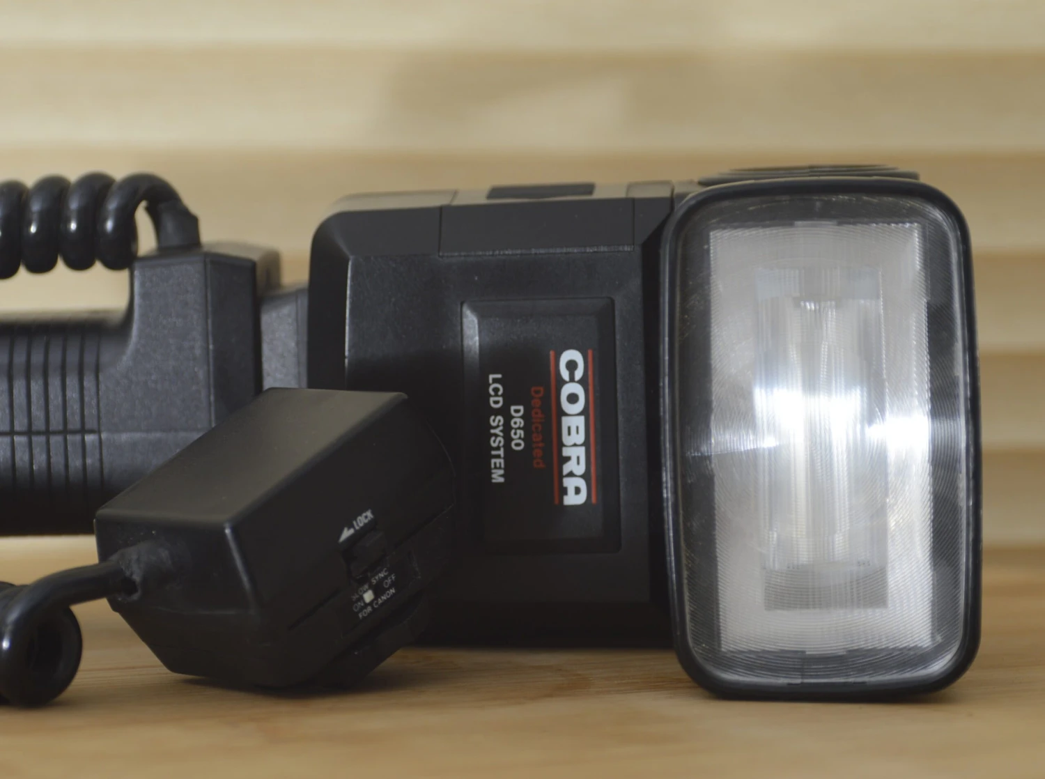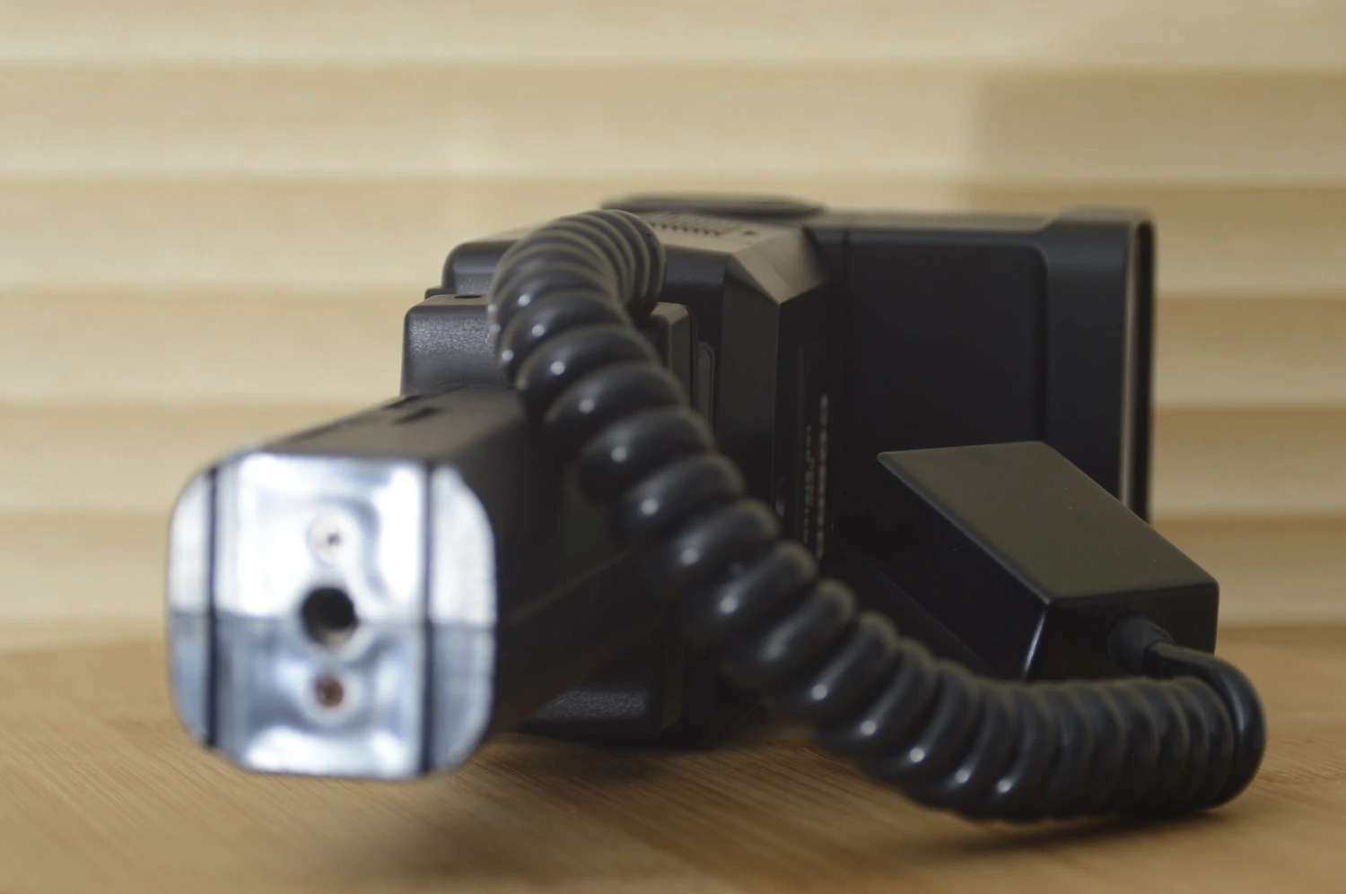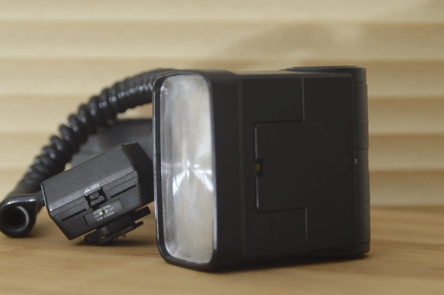A great flash gun for your vintage Canon camera very powerful and has the hand held grip for you to either hand hold or mount on a camera bracket. Great for wedding or parties when you need to be noticed as the photographer or for studio work. Size does matter sometimes ! This has the sensor attached that can sit on the camera for perfect exposure.