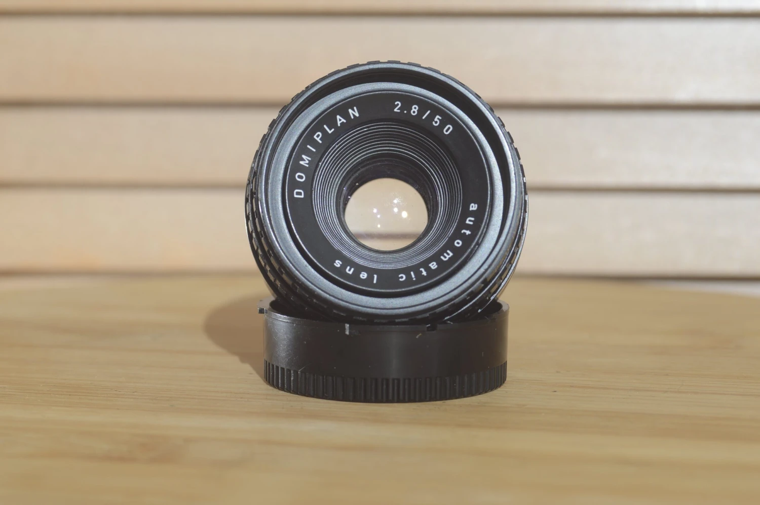 The Meyer Optik Domiplan is a very common 50mm lens with a maximum aperture of f/2.8. It has 3 elements in 3 groups since it’s a classical anastigmatic triplet lens. It was sort of the kit lens on many Praktica cameras, but after Pentacon took over Meyer being replaced by the rebranded Oreston, which is a 50mm f/1.8 lens.