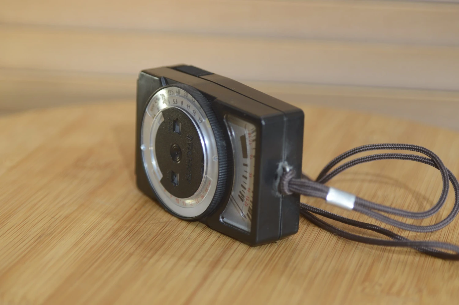 Fantastic condition light meter. Great for more accurate readings. A really a handy companion, so small and easy to use, you just have to love it. Simple match needle, no “on” button, not even a trap needle to keep your measurement, it just meters whatever you point it at until you close the case.