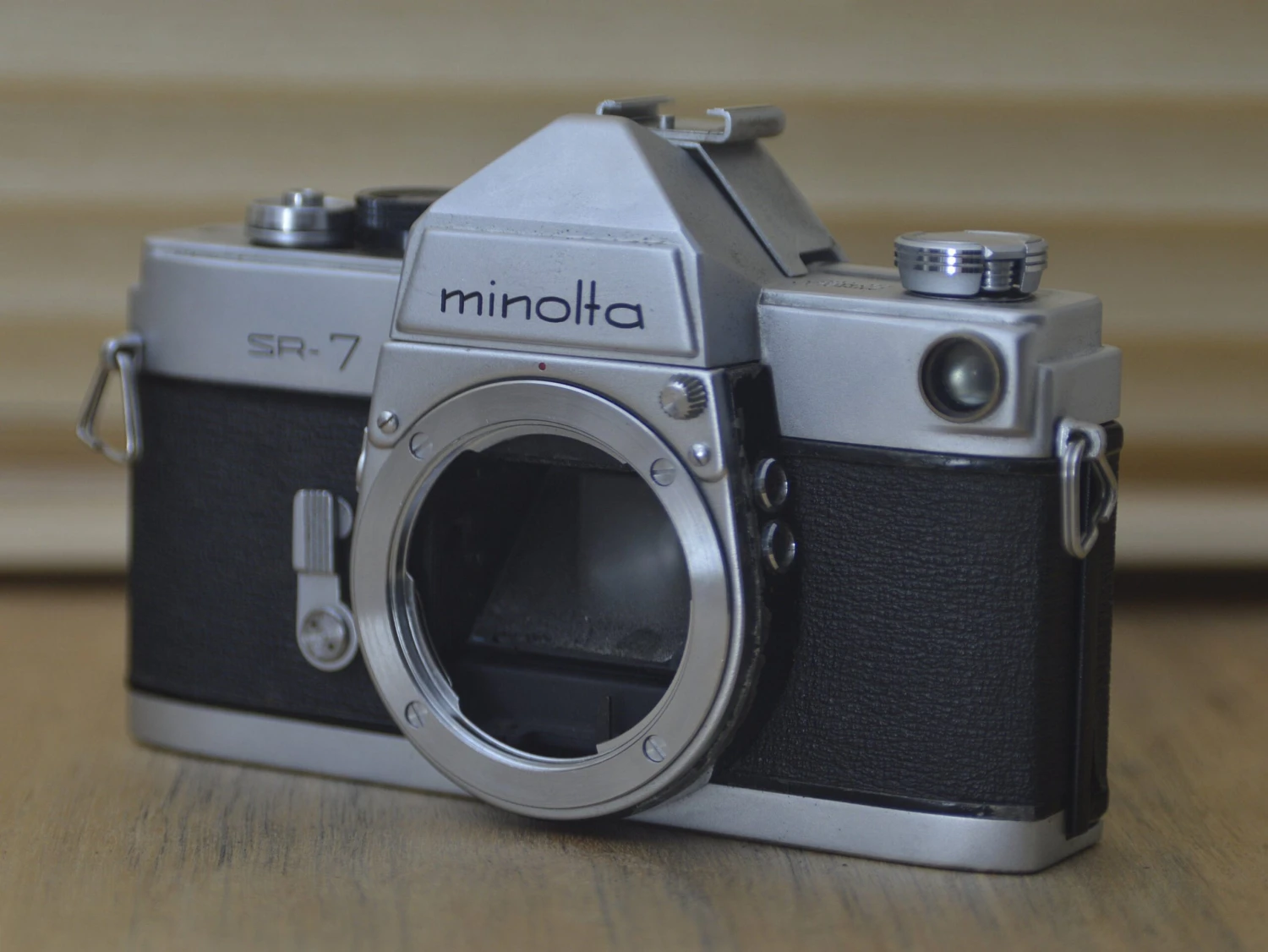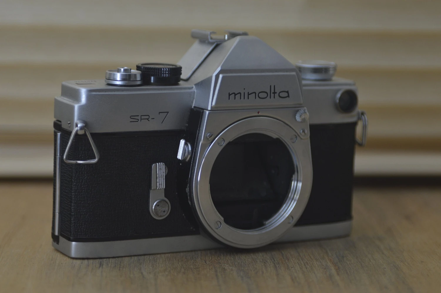 The Minolta SR-7 stayed in production from 1962 to 1966, with minor changes in its mechanism and overall construction. Specifically, in the early versions, the meter had no switch to turn itself off, so the owner had to close its leather ever ready case to prevent it from draining batteries. A year later, this was rectified and a switch was added. Mirror lock up function was also improved.