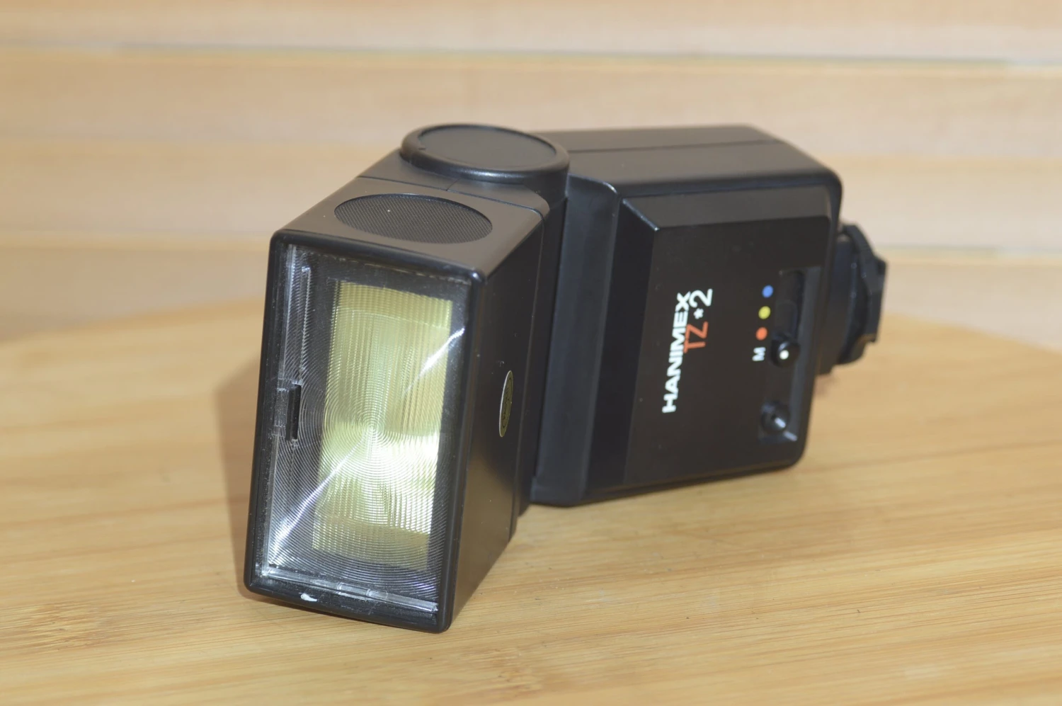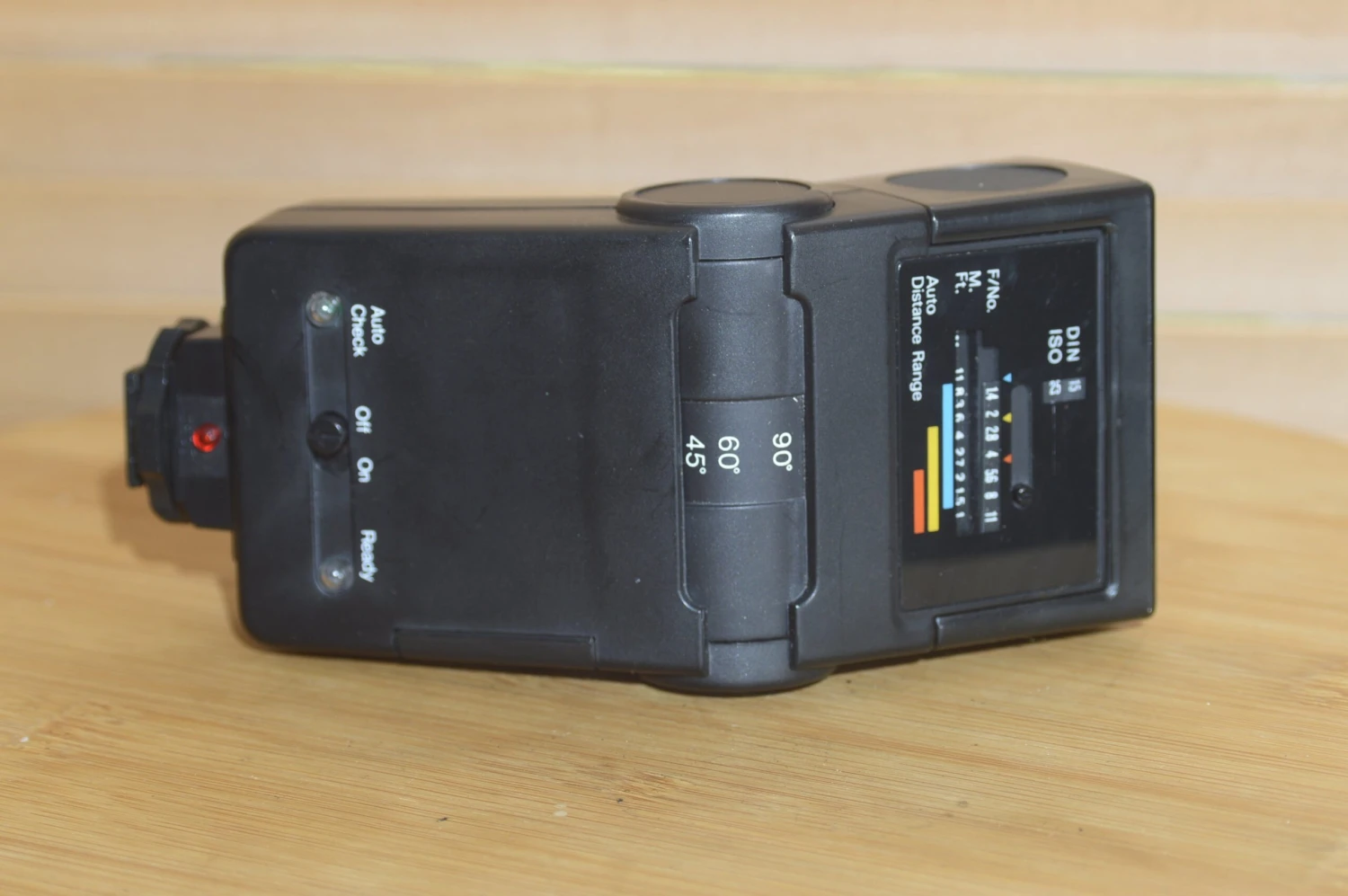 This is the perfect flash unit if you have different makes of vintage camera, works with  Canon, Nikon, Pentax and  Olympus OM 35mm camera. This item is fully tested and is in great condition.  These are compact and charge quickly but have the power and the bounce capability to be used as a main flash or fill in flash.Â