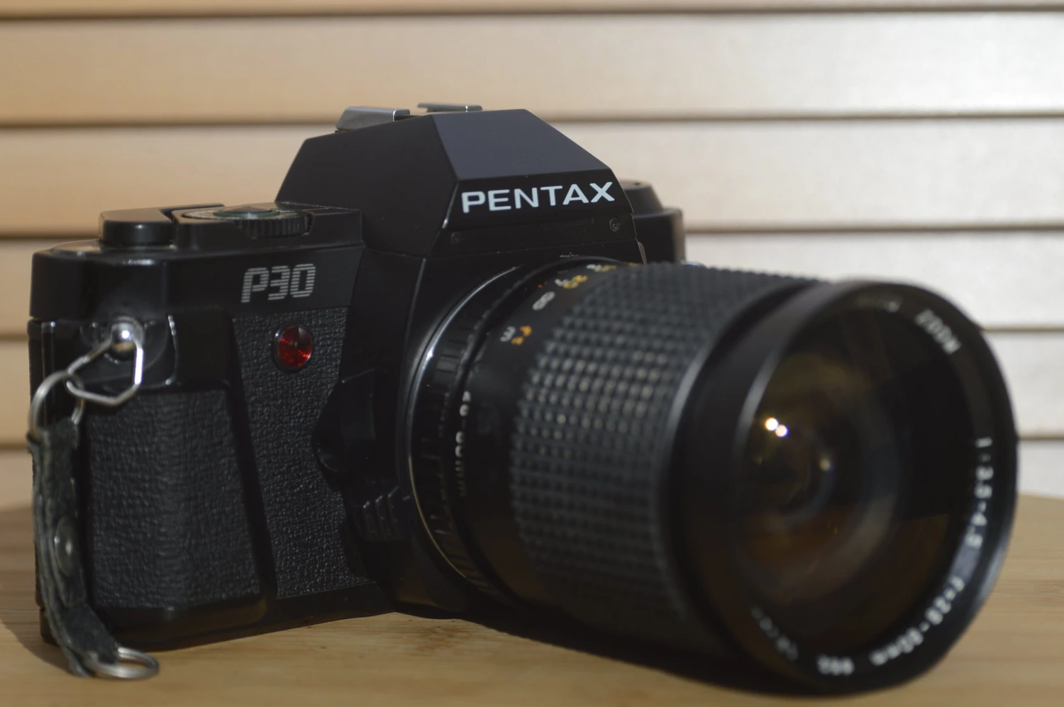 The Pentax P30 is an entry level 35mm manual focus camera that offers the choice of Programmed AE, Aperture-Priority AE, Metered Manual and Programmed Auto Flash The P30 offers a titanium foil shutter with 1/100th flash sync, a top shutter speed of 1/1000th and TTL (Through-The-Lens) flash metering.
