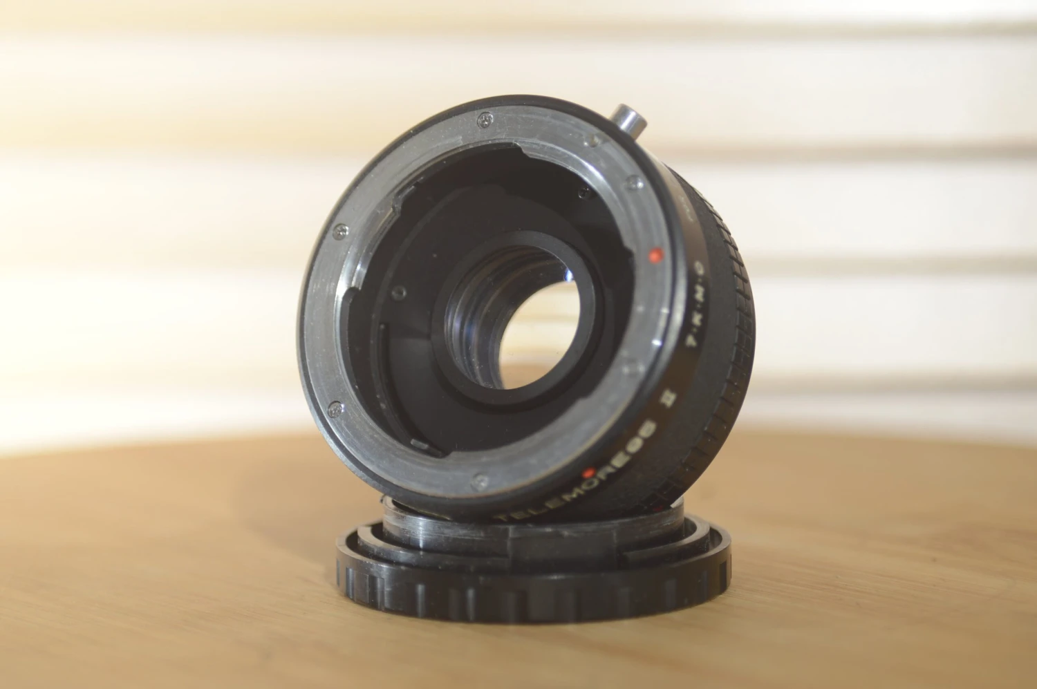 This PK teleconverter is a good addition to your vintage kit. Turn your 50mm lens into a telephoto lens and save space in your camera bag. Perfect if you have a smaller camera bag but want double the lens.