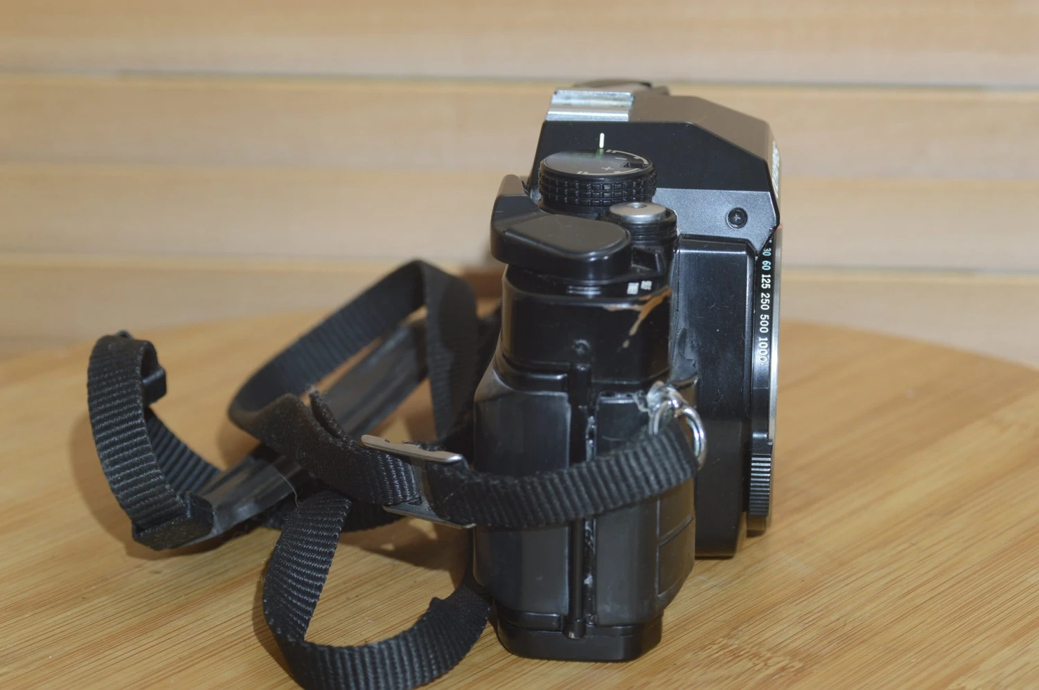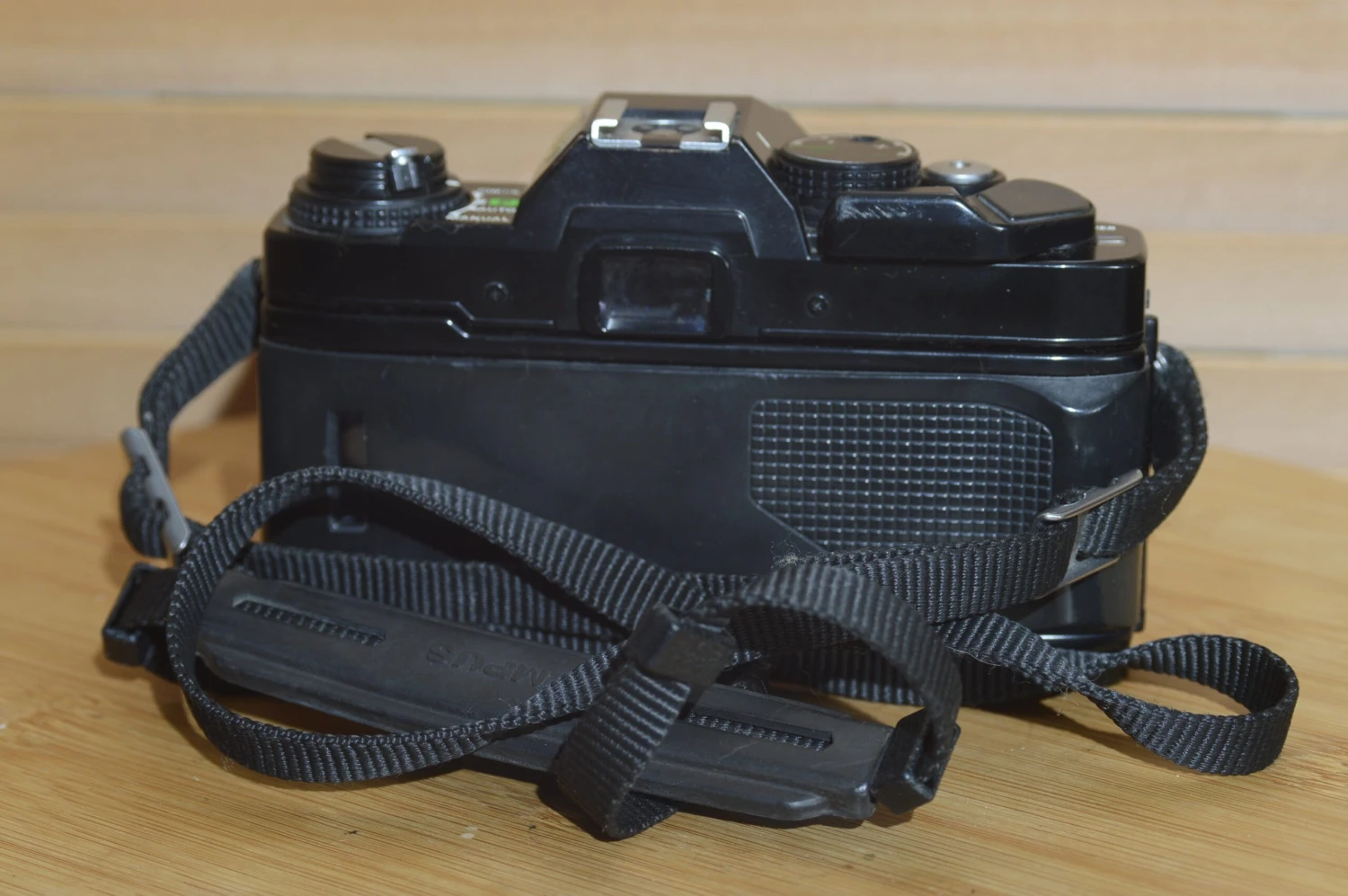 Great condition, with gorgeous brassing around the edged, giving it that extra character. Great starter camera, lovely mechanics and features. Â Perfect SLR to get you started into 35mm photography. Compatible with all vintage OM lenses. If you would like to chat with us about a starter pack, do let us know. Â Full of features and a great starter camera giving you access to the Zuiko lens system.