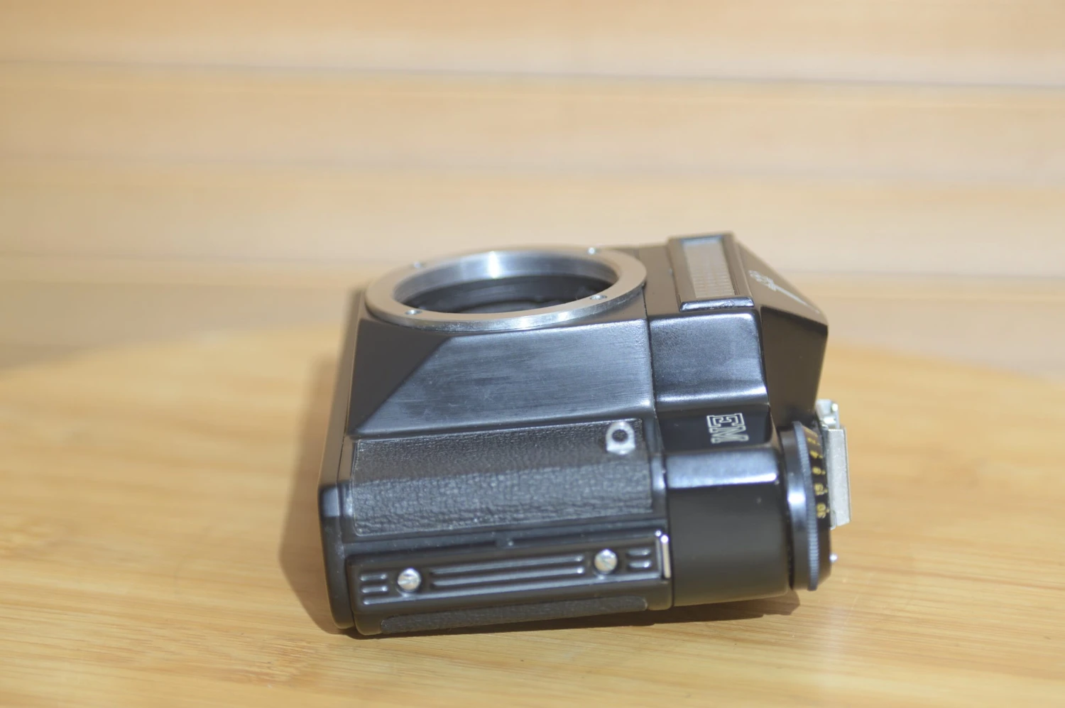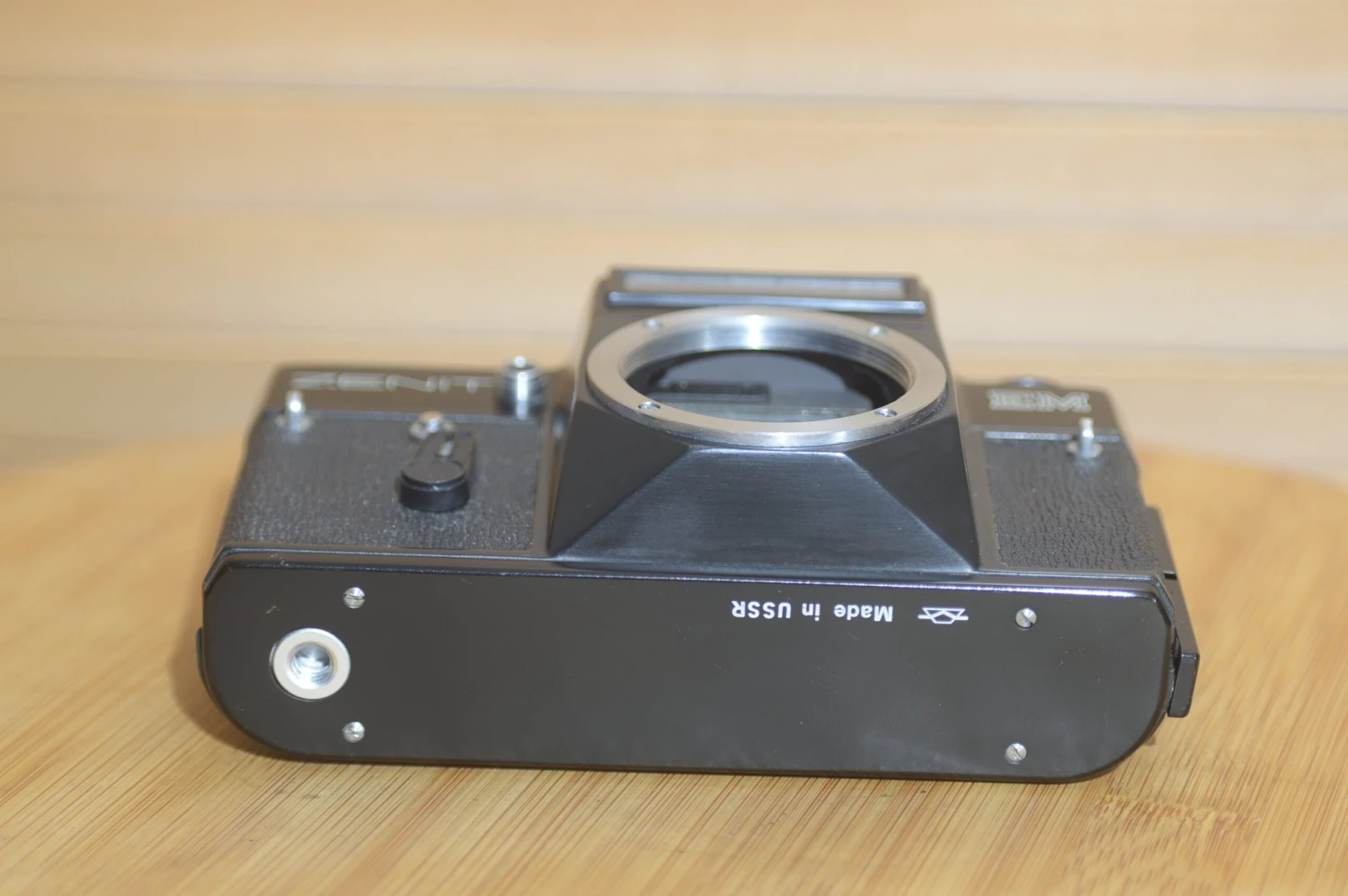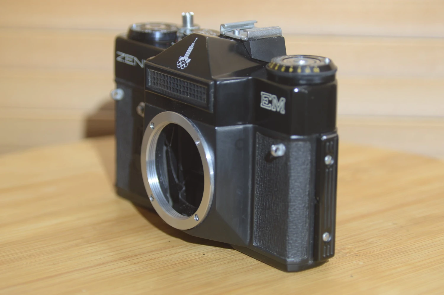 Gorgeous condition Zenit EM. This has been well kept with virtually no signs of use. A set up for all occasions. Great for beginners. Solidly built and easy to use. Takes all M42 lenses. These are becoming increasingly popular as they are so versatile. Great for students just starting in 35mm film. Purely mechanical shutter and an on top light meter that requires no battery. Very sturdy and stylish vintage SLR.