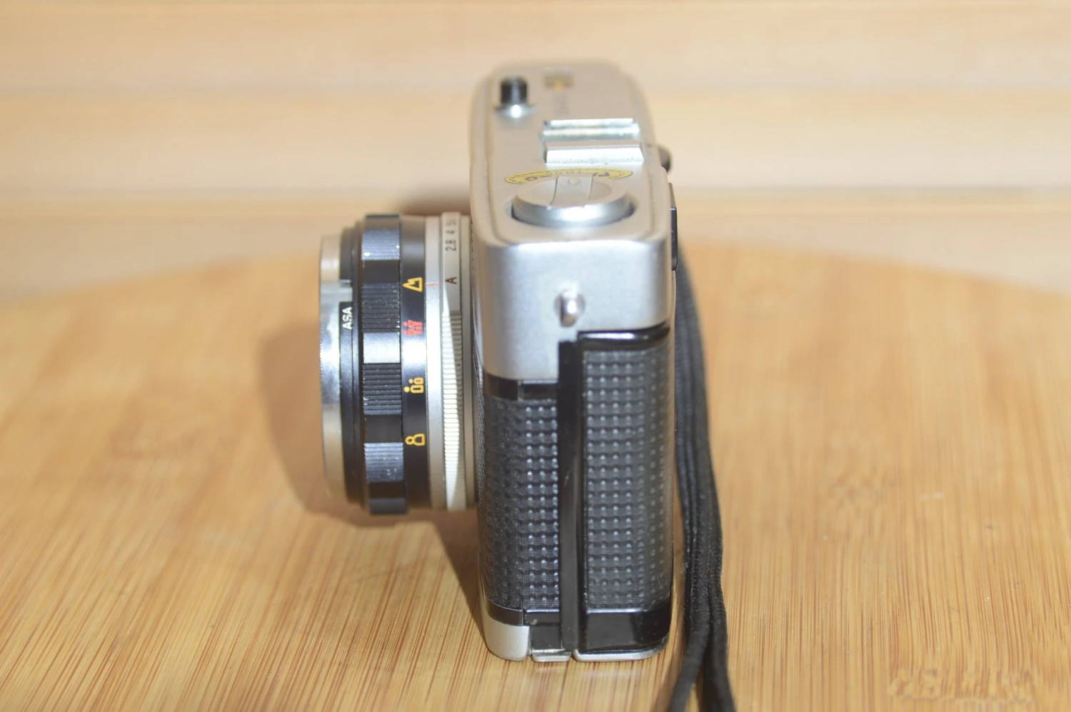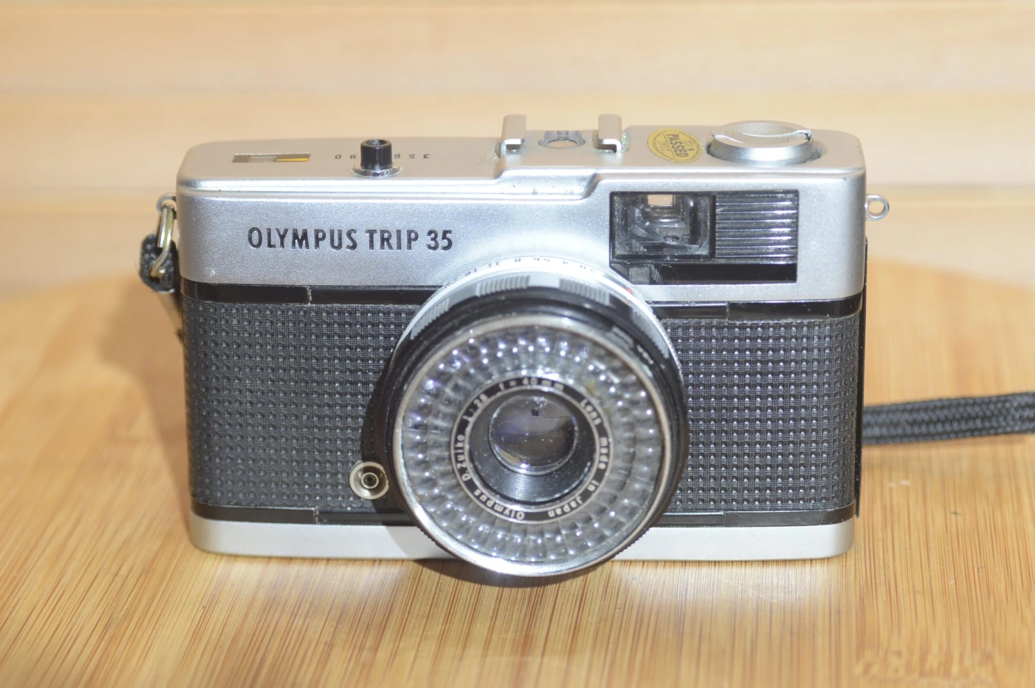 The Trip 35 is a 35mm compact camera, manufactured by Olympus. It was introduced in 1967 and discontinued, after a lengthy production run, in 1984. The Trip name is a reference to its intended market—people who wanted a compact, functional camera for holidays. During the 1970s, it was the subject of an advertising campaign that featured popular British photographer David Bailey. Over ten million units were sold. However, many of these were not looked after and these are becoming increasingly rare. We se very few in this fantastic condition and complete with lens cap.