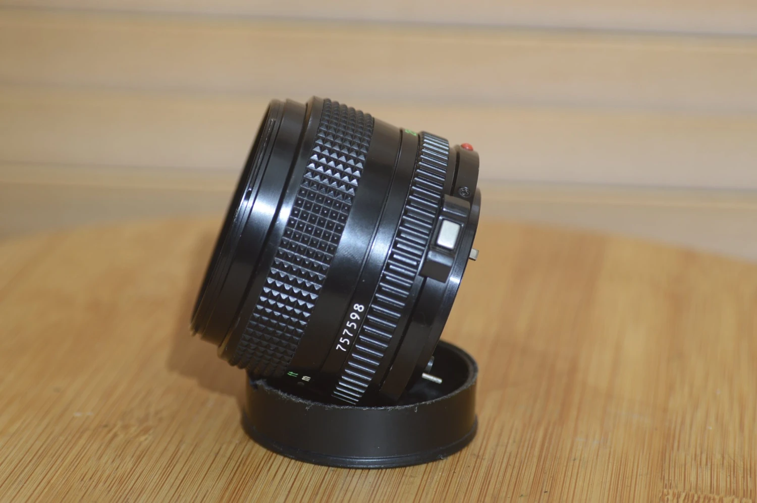 This is in good condition and has been cleaned and tested. This is a truly lovely lens, we personally use one and love them. A great addition to your Canon FD set up.