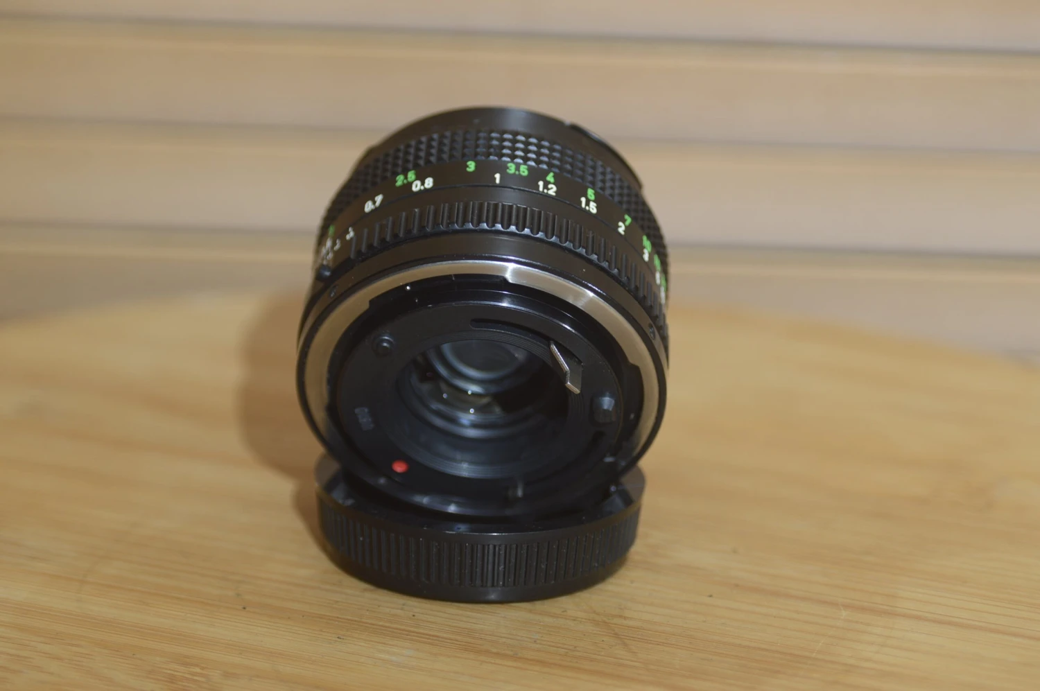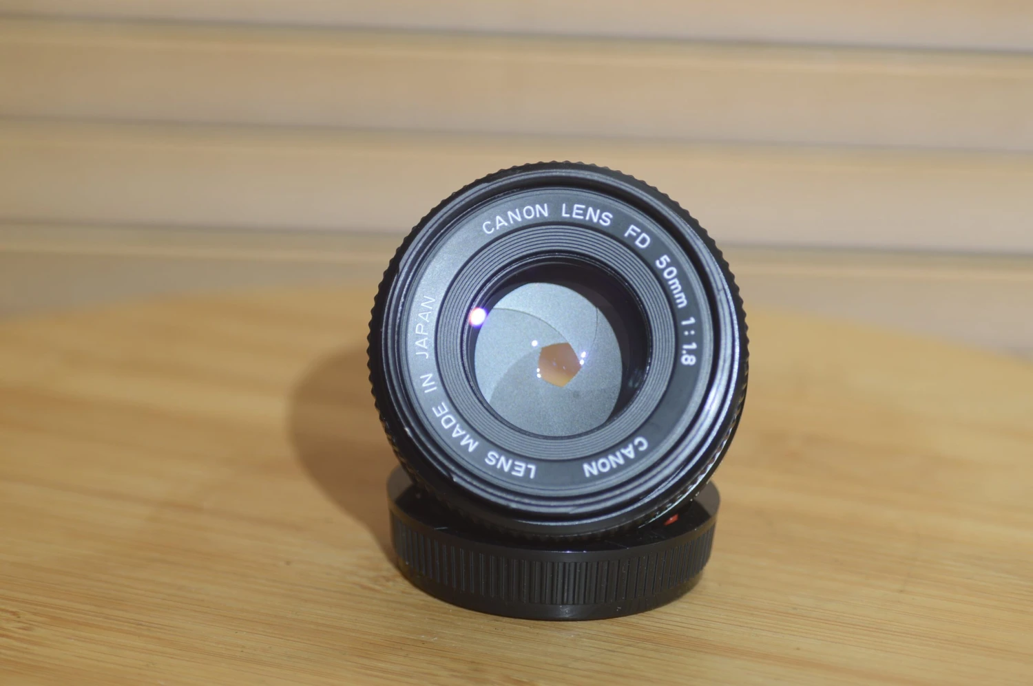 Great condition vintage FD fit 50mm f1.8 prime lens, tested and fully working. Can be used with converter on digital cameras for vintage results. These are increasingly rare to find and a favourite of collectors.