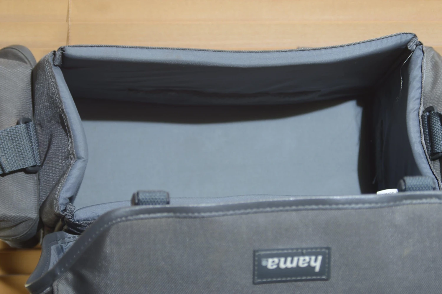 This is perfect for bringing your camera with you. Two outer pockets, a zipped pocket on the back for carrying your phone or keys. Large central space and elastic loops on the lid for extra film or standard lenses.