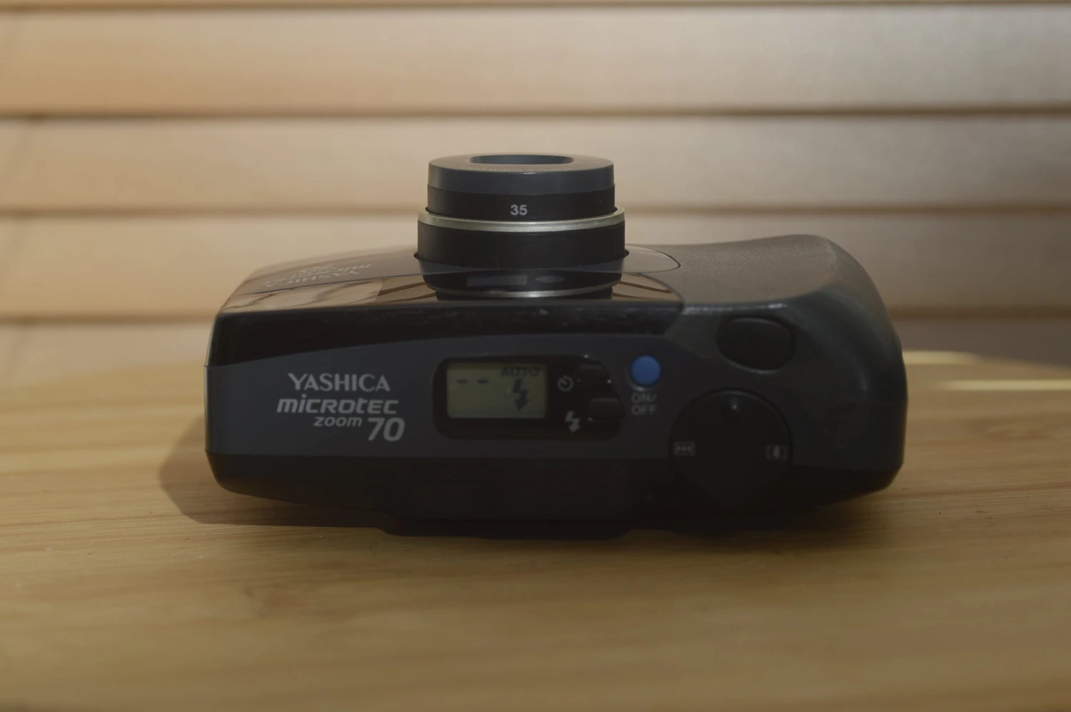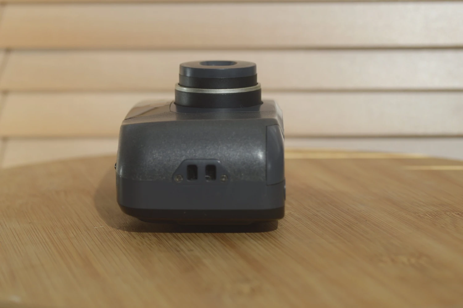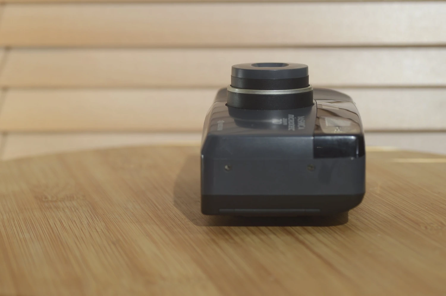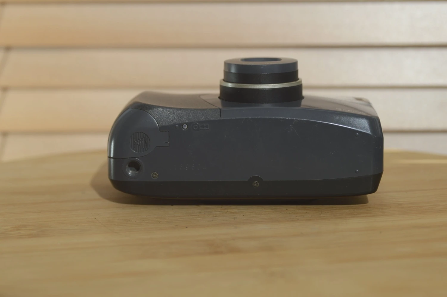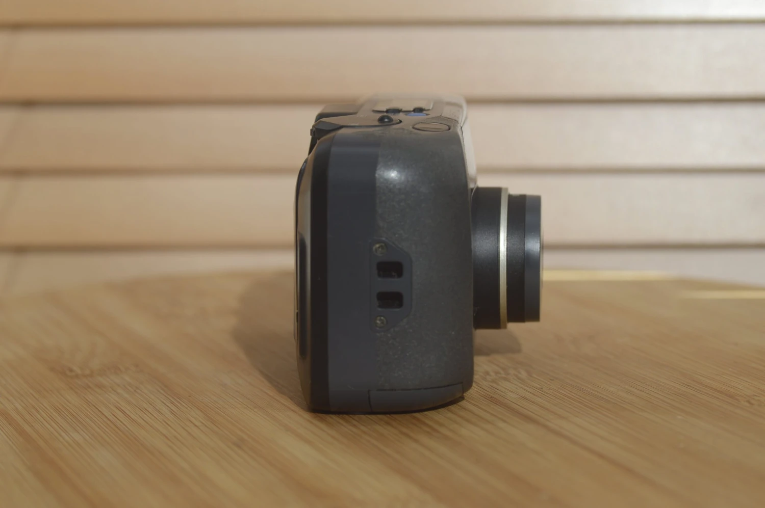 Style wise the camera resembles rivals like some of the smaller Pentax Espio series and is typical late 90’s black plastic. The gold band around lens barrel is a nice stylistic point. The controls make ergonomic sense and this is a nicely weighted camera with rage centre of balance just off towards the control side.