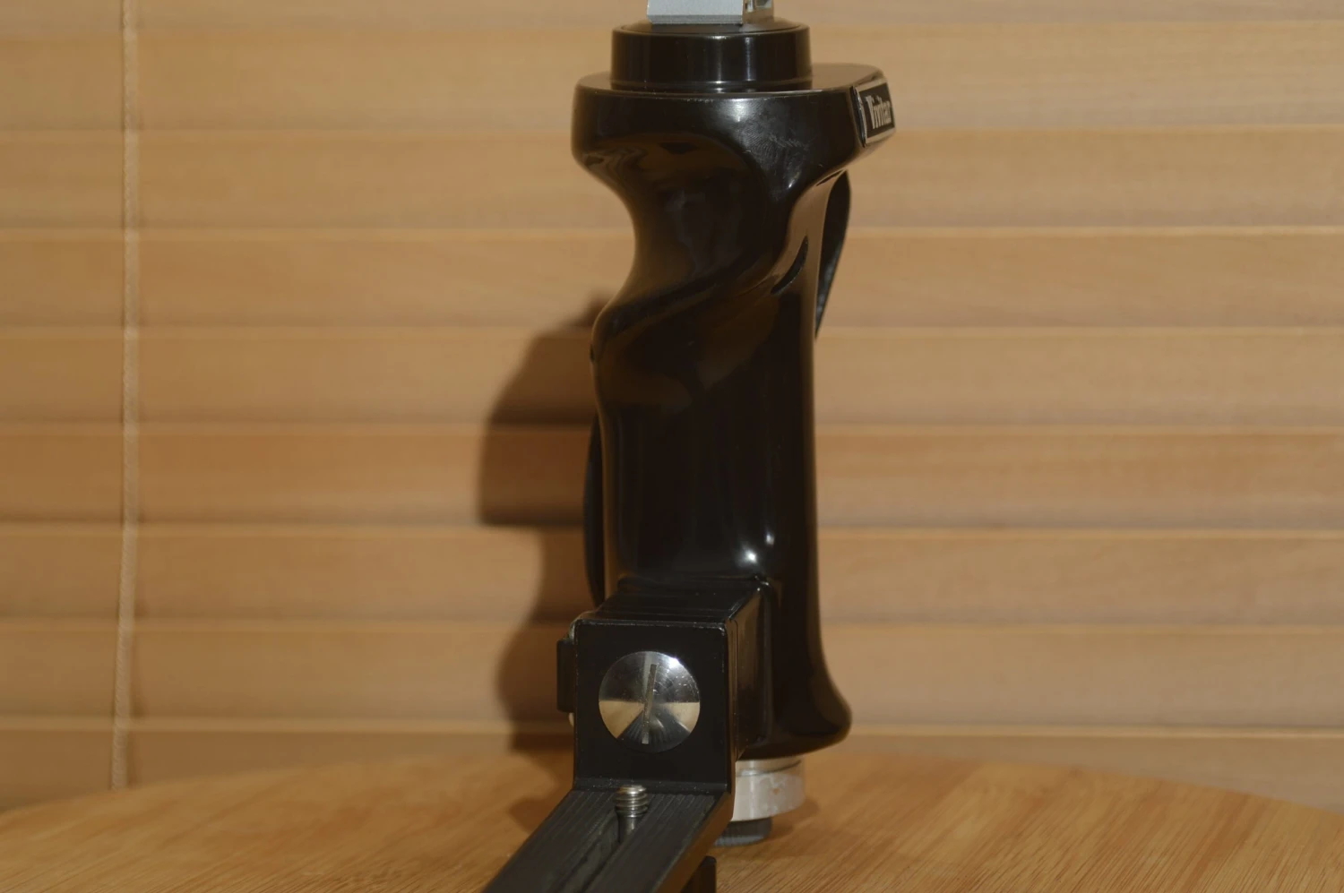 Fantastic flash grip In beautiful condition. 360 degree turn on the hot shoe, great for bounce flash techniques, especially if using a basic flash.. These are really useful on shoots to distance your flash and maintain a firm hold on the camera. Really comfortable
